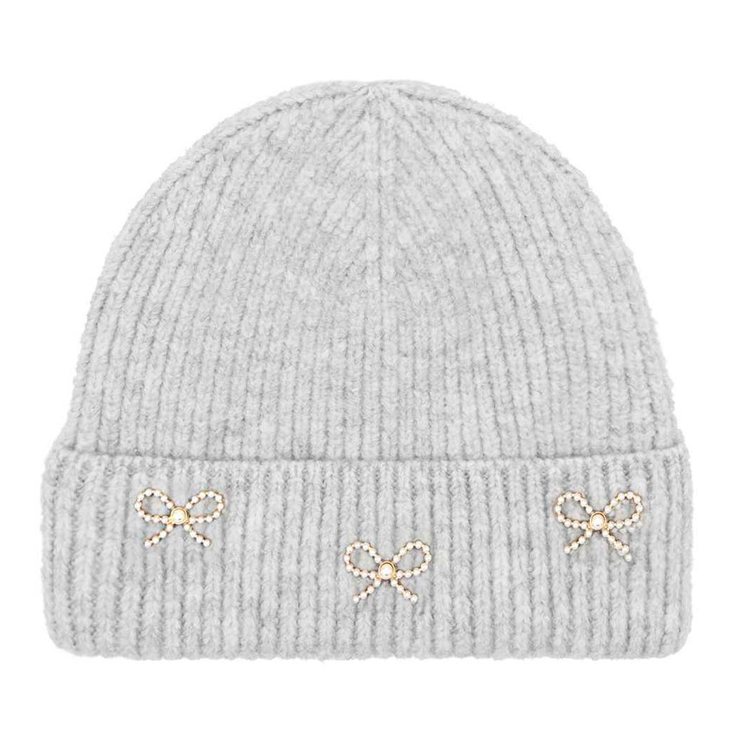 Stay warm without sacrificing style in this sophisticated Pearl Bow Beanie. The ribbed knit construction and folded cuff deliver reliable insulation, while three pearl bow charms elevate your winter look with understated elegance. Crafted from soft, stretchy fabric that moves with you, this one-size-fits-most beanie (9.5" x 8.5") transitions seamlessly from casual errands to weekend outings. Experience the perfect balance of cozy comfort and polished charm—the accessory that makes every cold-weather moment feel intentional and put-together.