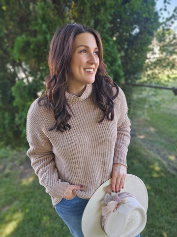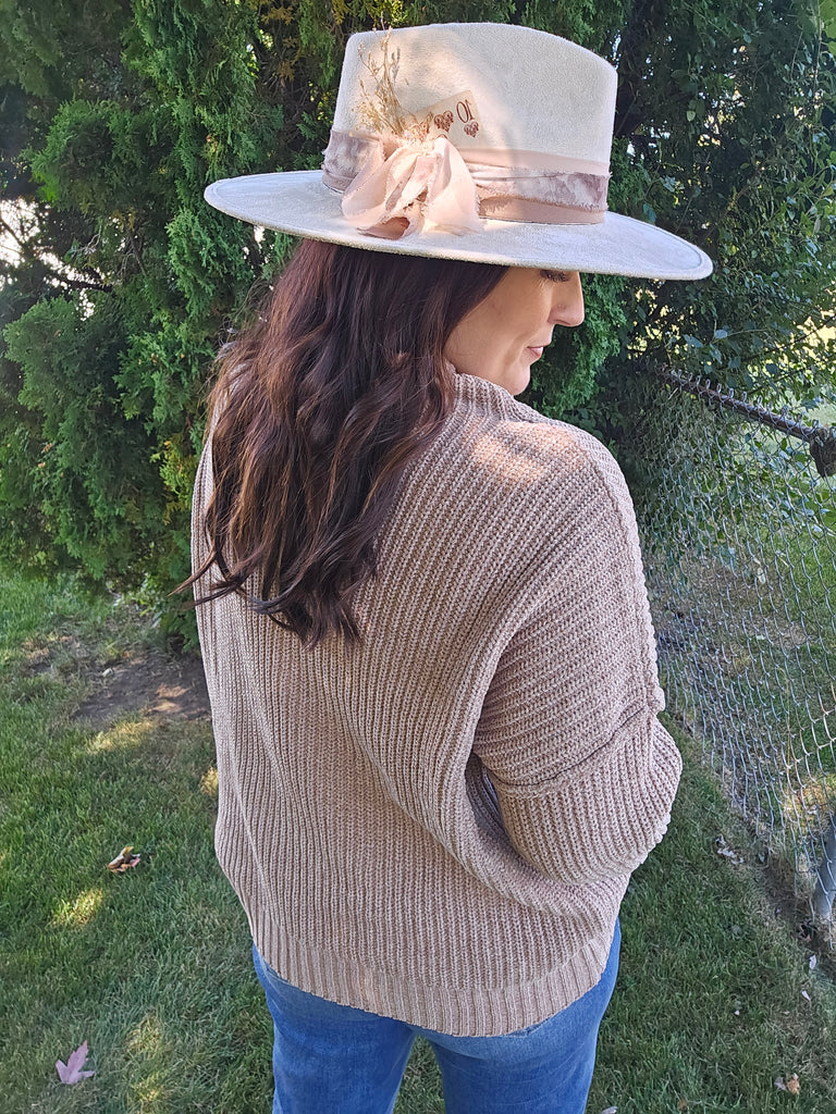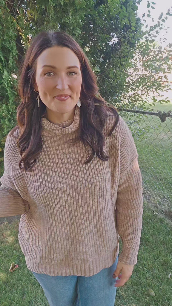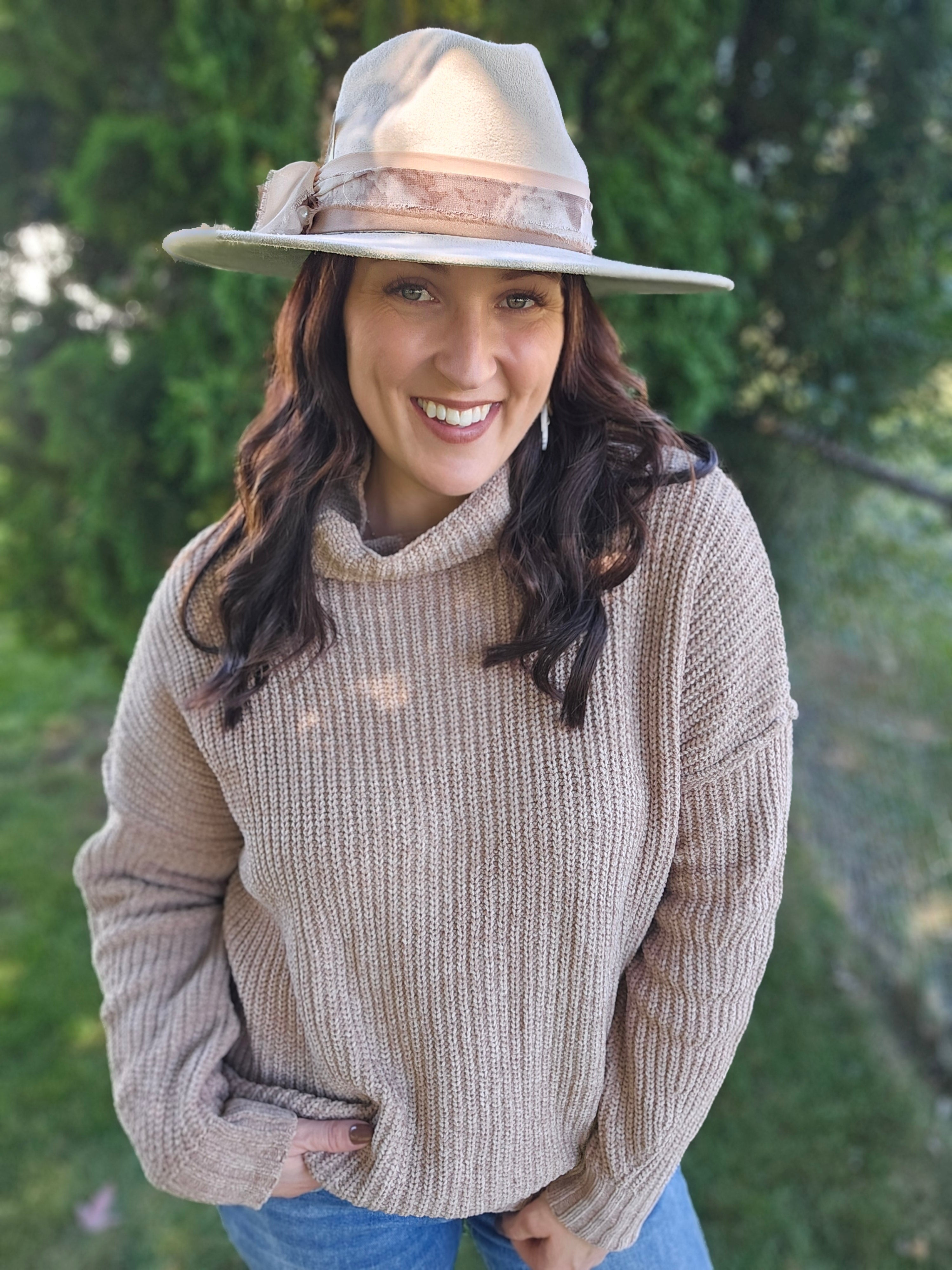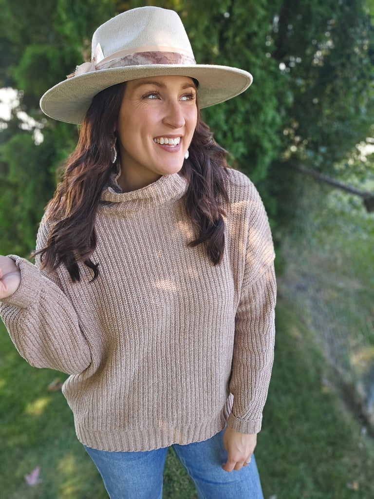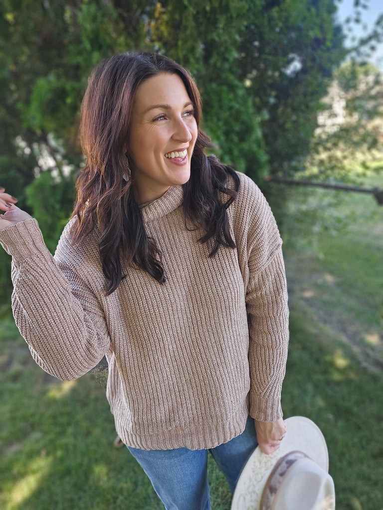 Stay cozy and stylish this season with our Chenille High Neck Sweater Top. Crafted from ultra-soft chenille fabric, this taupe sweater features a flattering high neckline and a relaxed fit for effortless comfort. Perfect for layering or wearing on its own, it pairs beautifully with jeans, skirts, or tailored pants.