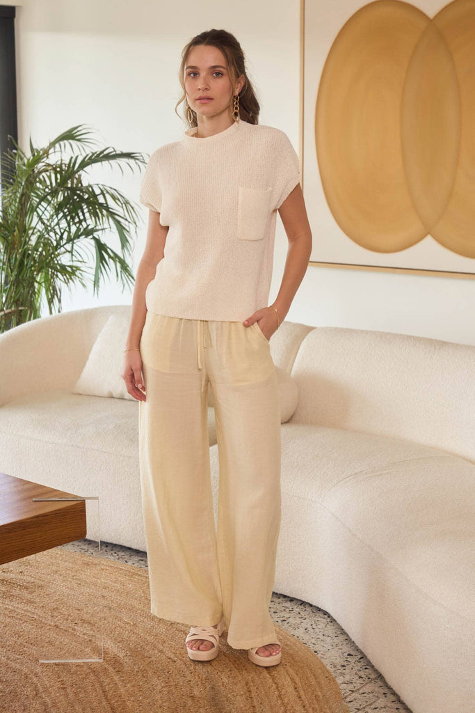 Elevate your everyday style with this Cream Mock Neck Sweater Knit Top. Designed with a clean, modern silhouette, this top features a cozy mock neckline, short sleeves, and subtle pocket detailing for an effortlessly polished look. Crafted from soft 100% polyester knit, it delivers lightweight comfort that’s perfect for layering or wearing solo. Not lined and intentionally simple, this solid knit top pairs beautifully with denim, trousers, or skirts—making it a versatile staple for any season.