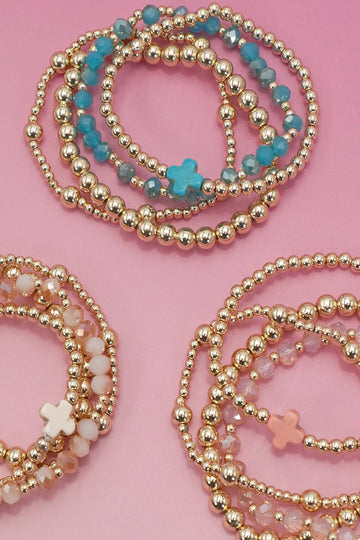 This vibrant boho stretch bracelet features colorful beads paired with a bold cross design, perfect for a spirited, standout look. Its elastic band ensures effortless slip-on comfort and adapts to most wrist sizes without the hassle of a clasp. Finished with gold plating and a durable double E-coating, it offers both style and lasting shine.