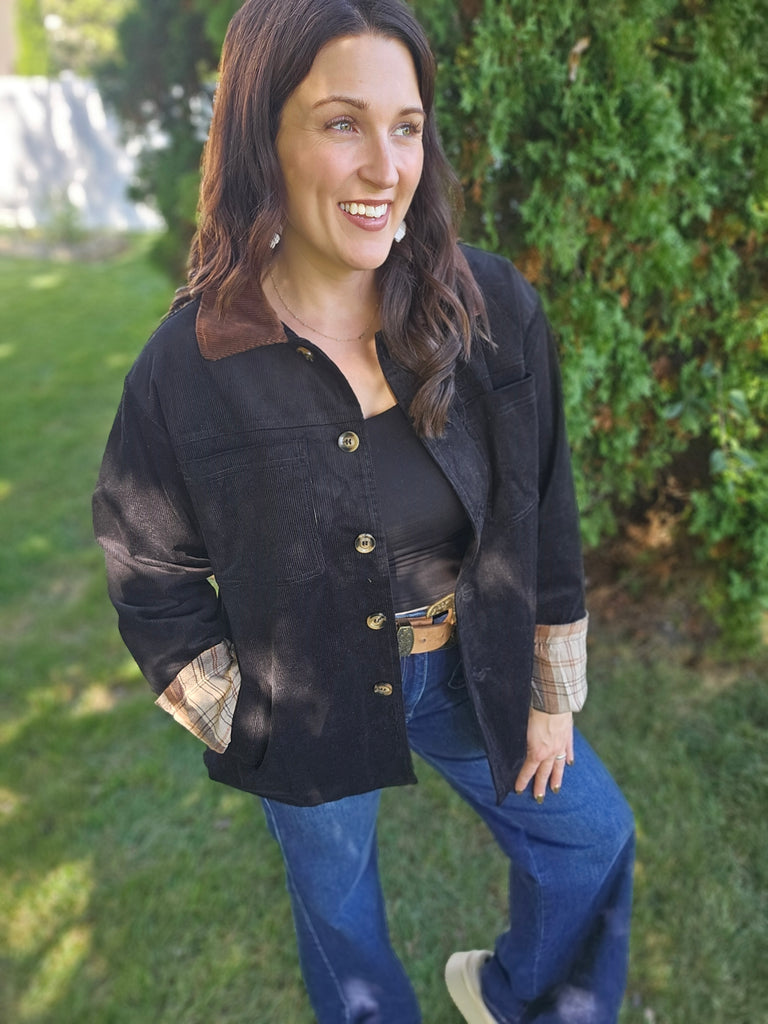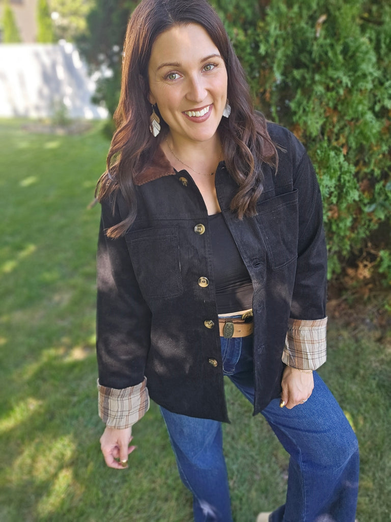 A timeless outerwear staple, this barn coat is crafted from soft, durable corduroy for a rugged yet refined look. The classic button-down front and relaxed fit make it easy to layer, while the inner plaid print adds a cozy touch of vintage charm. Perfect for outdoor adventures or simply adding rustic style to your everyday wardrobe.