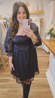 Step into the season in timeless elegance with our black square-neck puff sleeve mini dress, the perfect little black dress for every holiday event. Designed with statement puff sleeves, elasticized cuffs, and a flattering square neckline, this mini instantly elevates your party-ready wardrobe. The smocked back ensures a comfortable, flexible fit, while the fully lined interior gives you smooth, confident wear all night long.